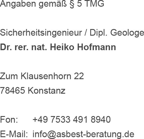 Falls Sie Interesse haben, Inhalte für Ihre Präsentation oder Schulung oder Vorführung zu verwenden, nehmen Sie zuvor Kontakt mit mir auf, um Bedingungen für ein Lizenzmodell zu vereinbaren. Dies betrifft insbesondere die Schulungsinhalte zur TRGS 519 Sachkunde.