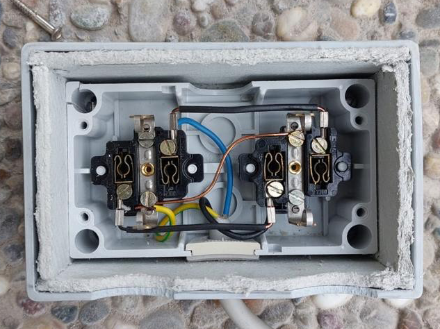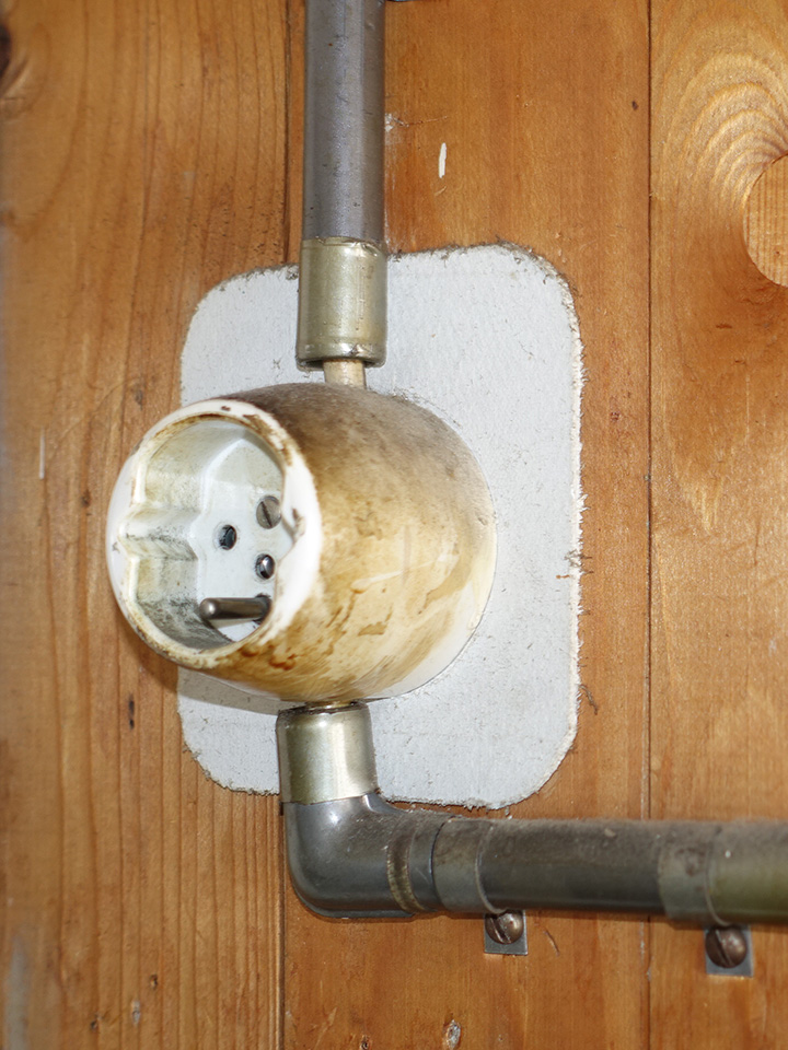 Asbestpappe unter einer Steckdose © Bild von Carbotech auf polludoc.ch unter CC-BY-SA 4.0 Lizenz