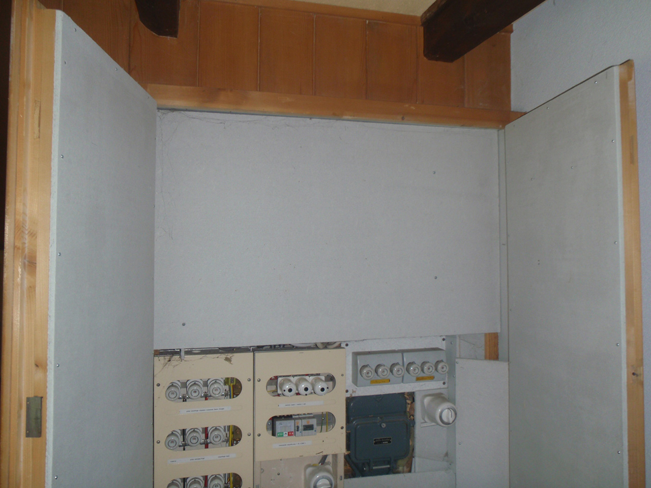 Leichtbauplatten in einem Elektroschrank © Bild von S. Schneebeli auf polludoc.ch unter CC-BY-SA 4.0 Lizenz